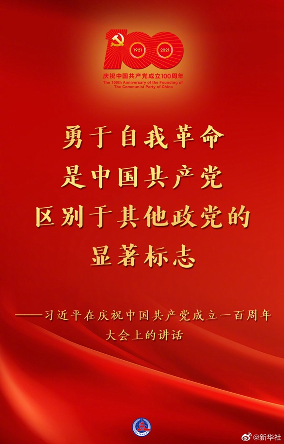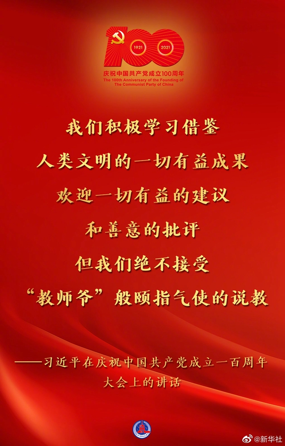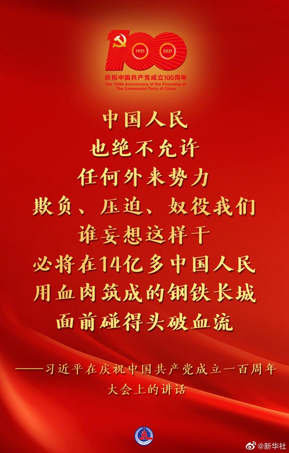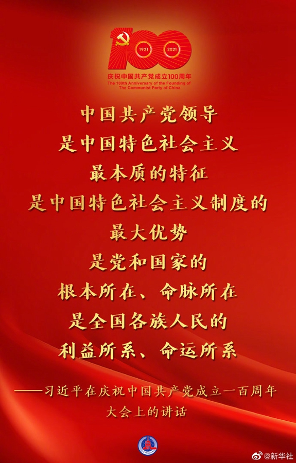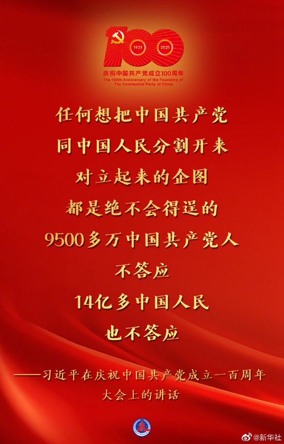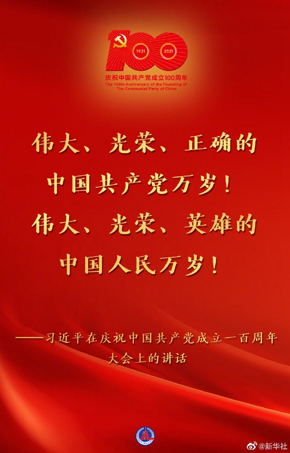 习近平总书记在中国共产党建党100周年庆祝大会讲话金句