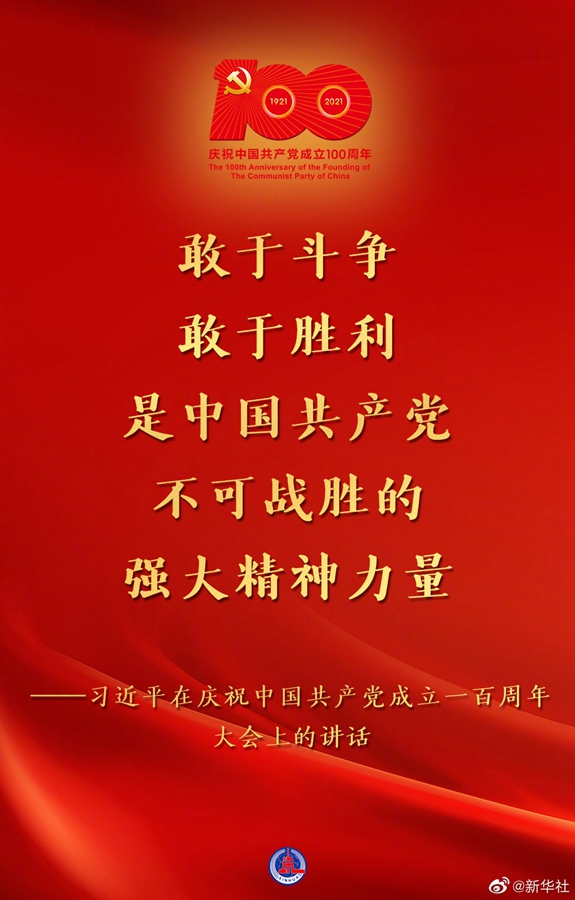 习近平总书记在中国共产党建党100周年庆祝大会上讲话金句